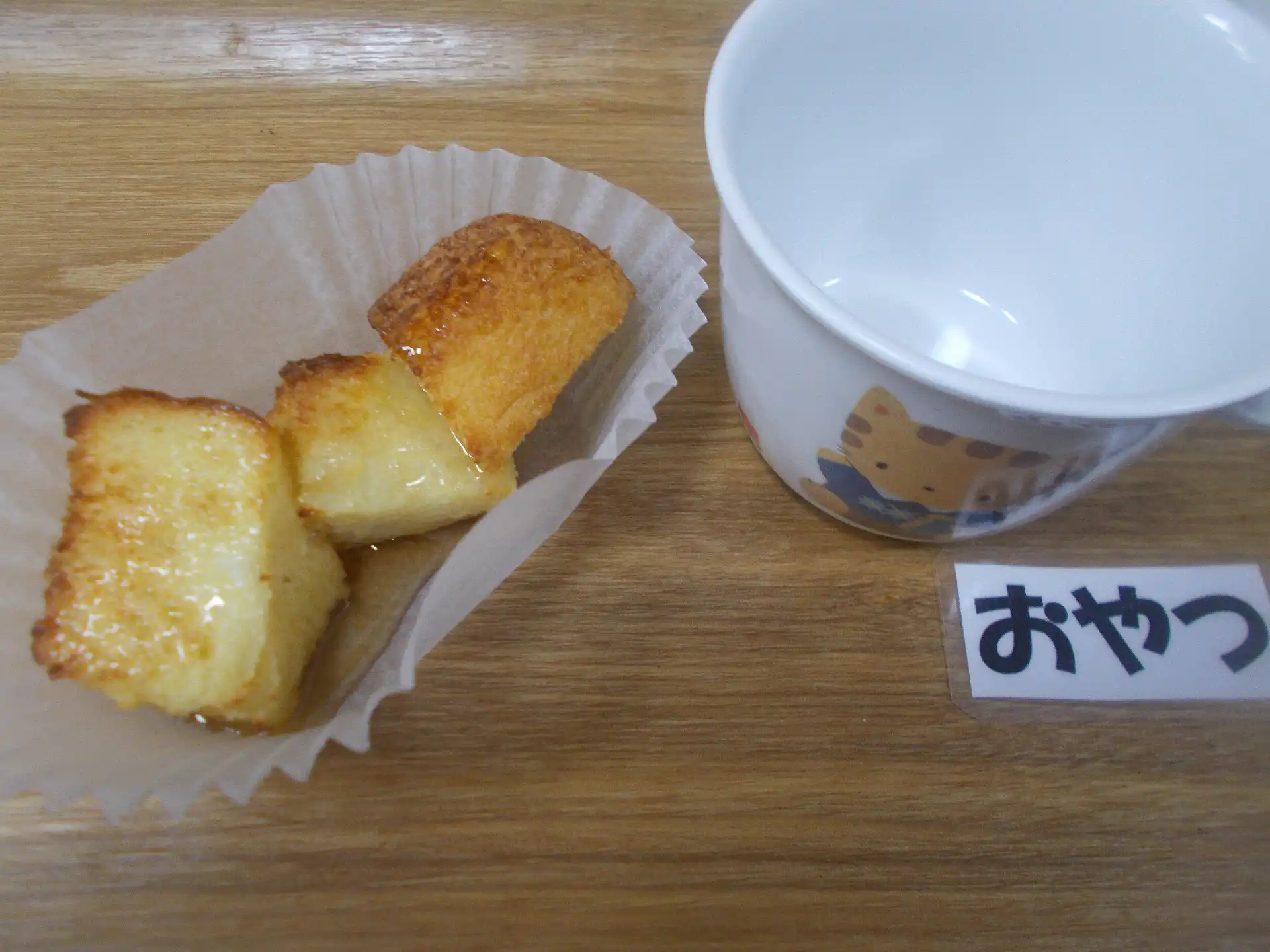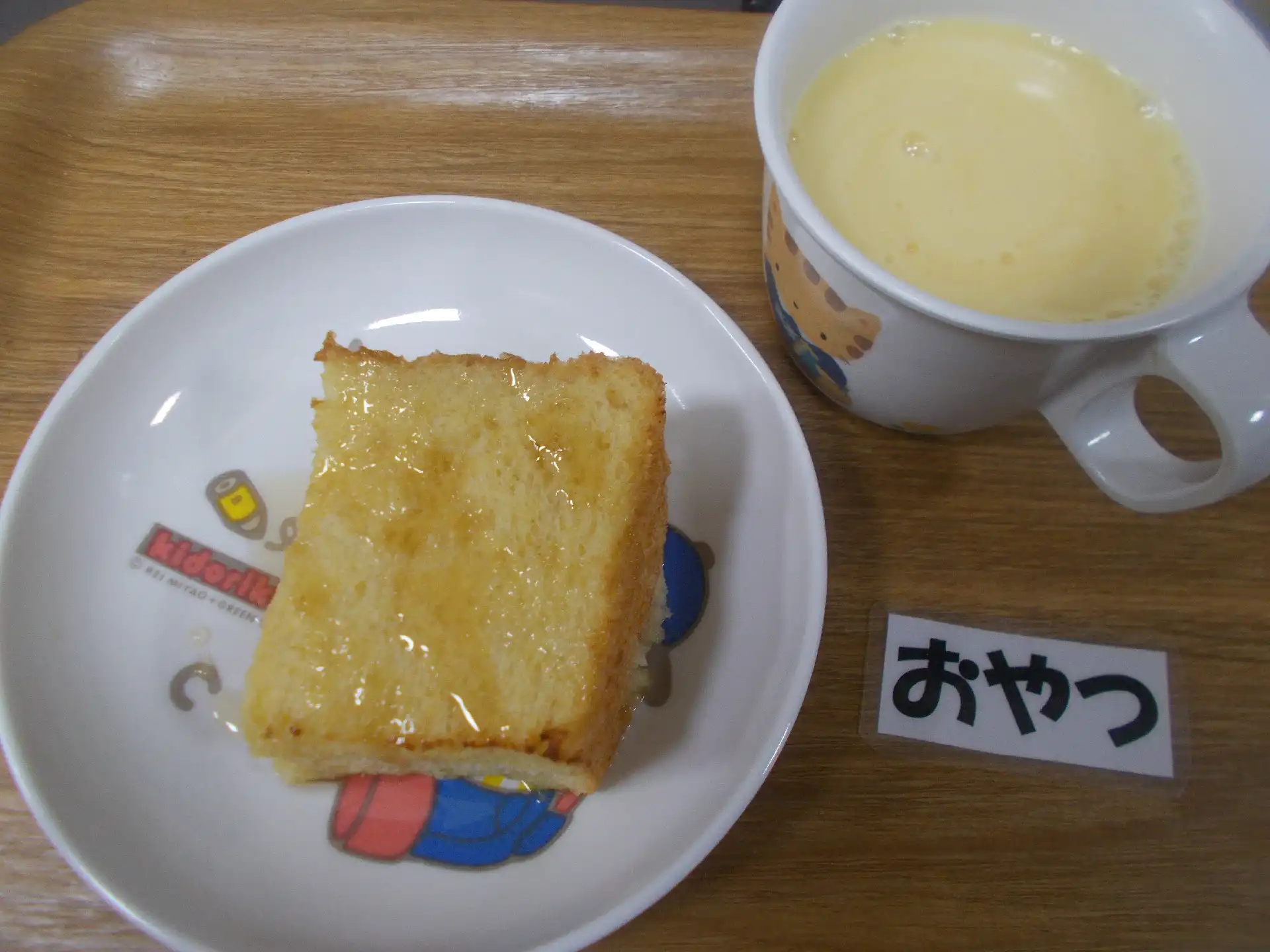 おやつ | フレンチトースト、オレンジ豆乳 離乳PM:フレンチトースト、温牛乳 | ||