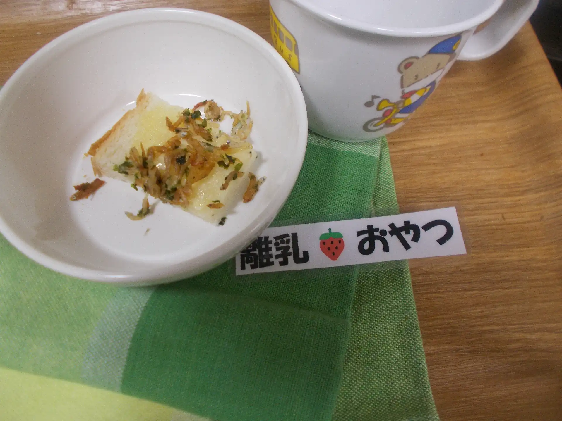 おやつ | りんごトースト、牛乳 乳児と同じ、温牛乳 | ||