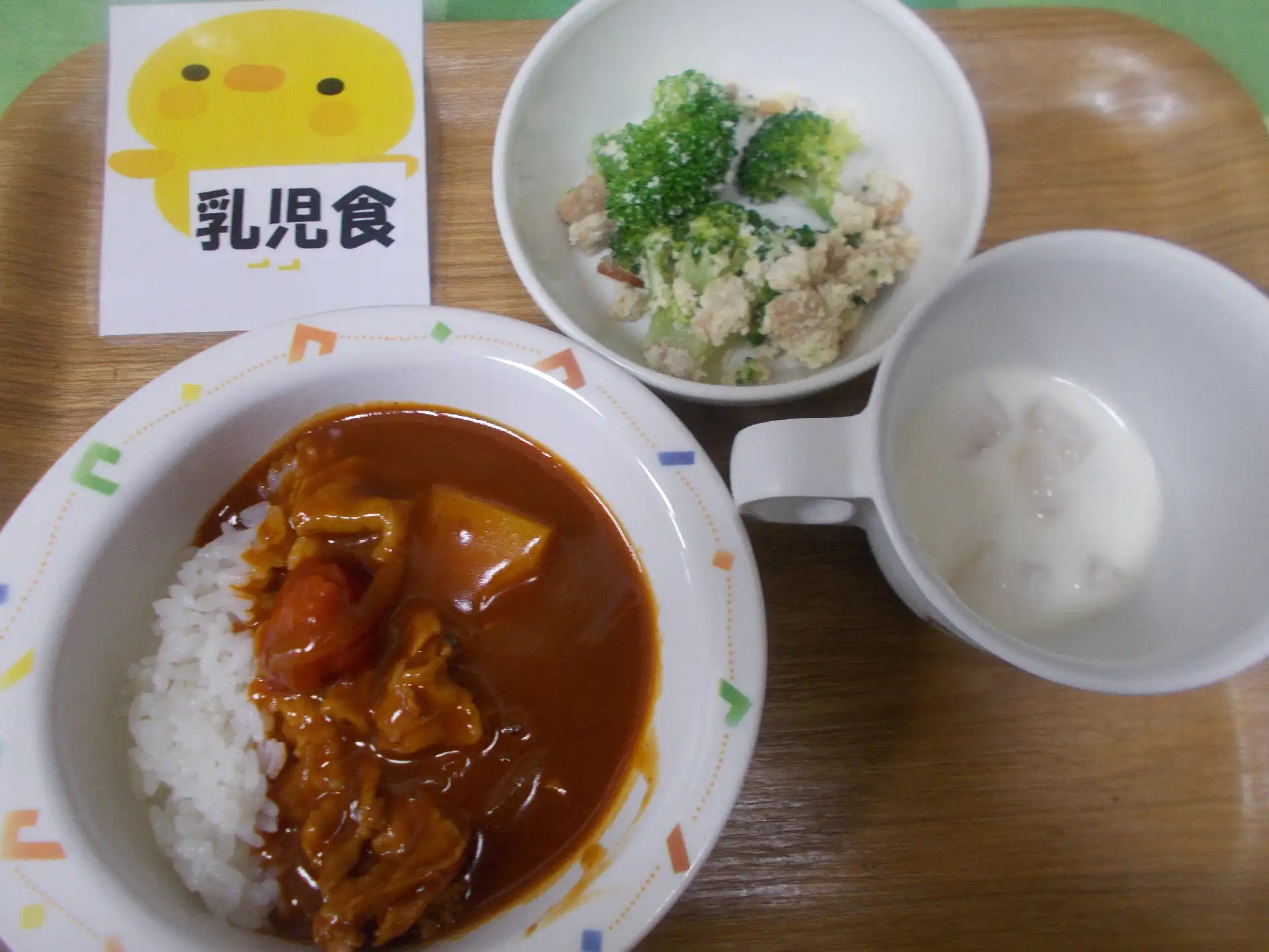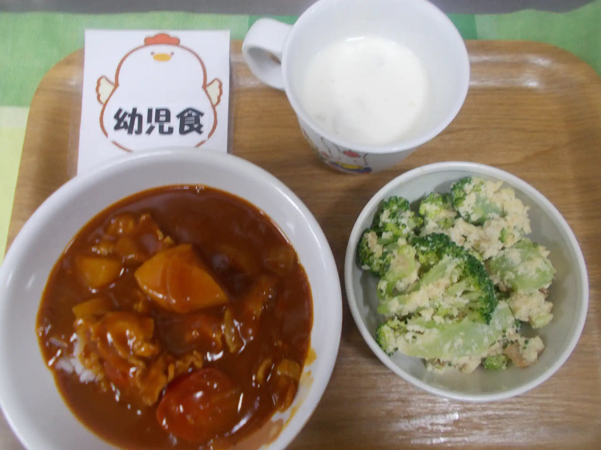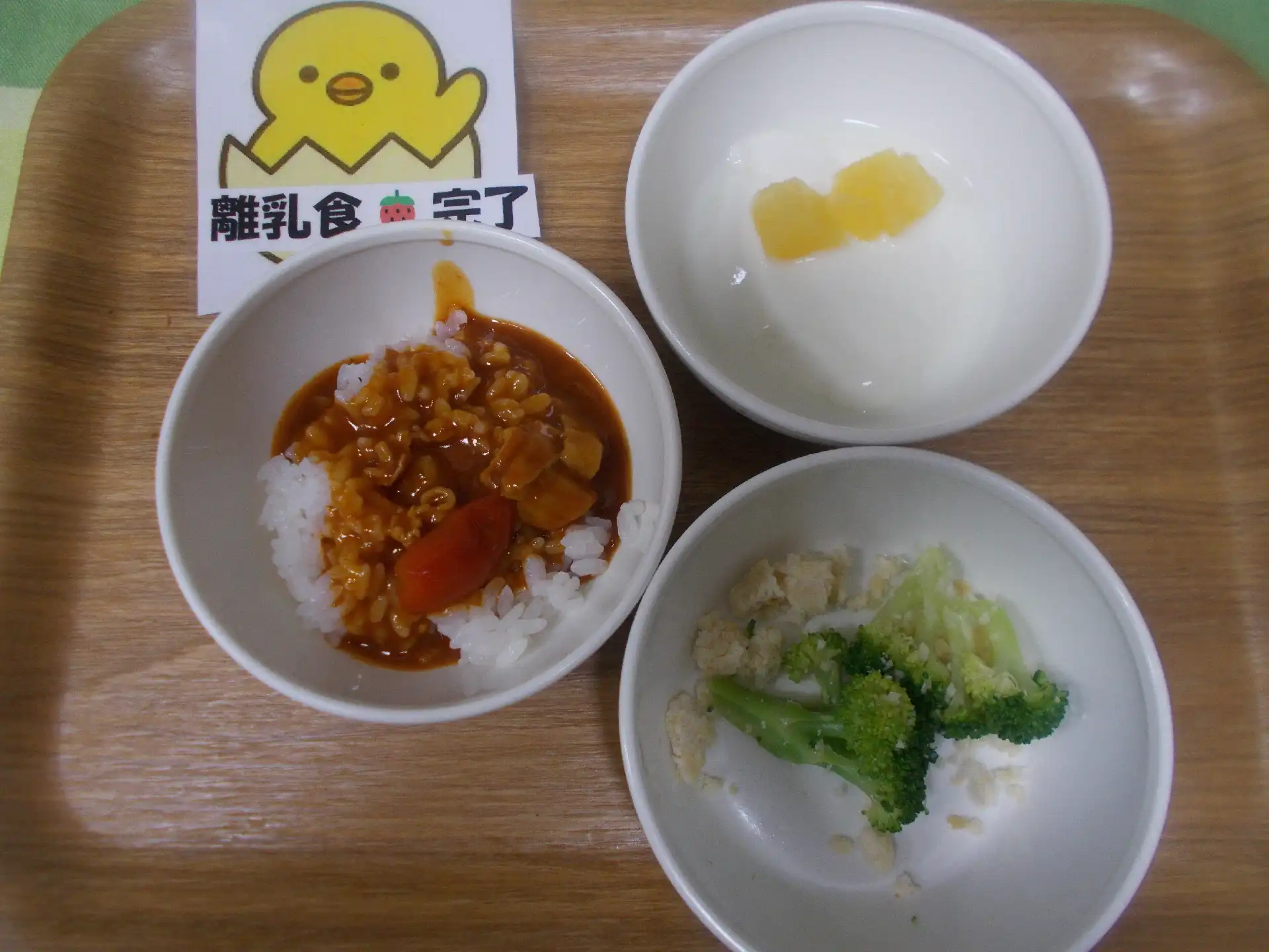 給食 | トマトチキンカレー、ブロッコリーとおからのサラダ、フルーツゼリー 離乳食(完了):乳児と同じ |