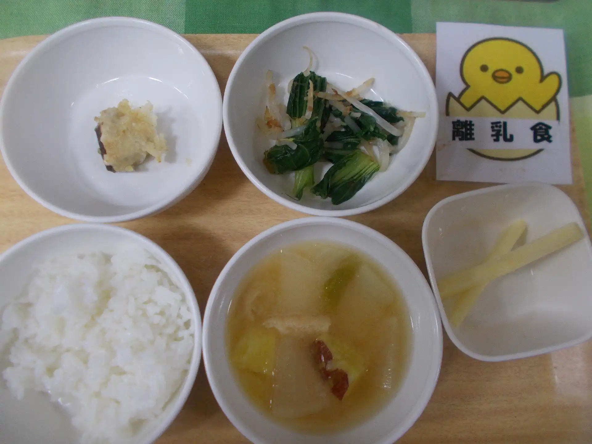 おやつ | 大学芋、牛乳 離乳:大学芋、牛乳 | ||